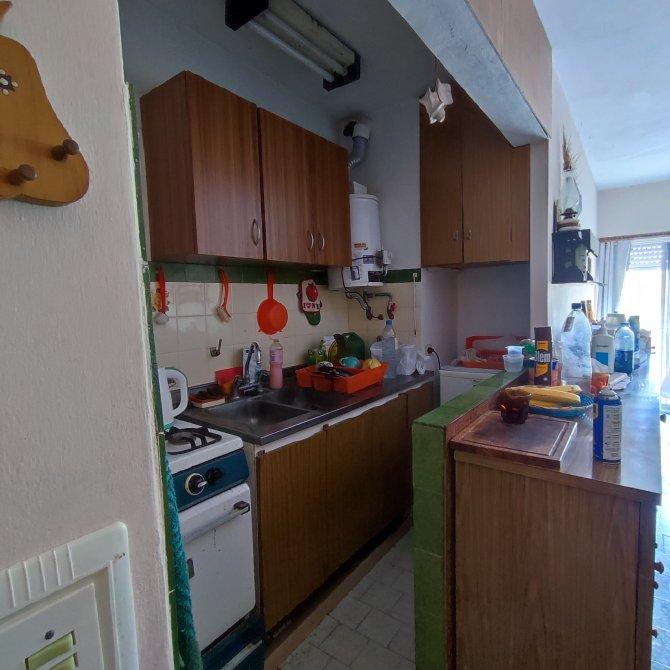 Cocina tipo kitchenete con barra.