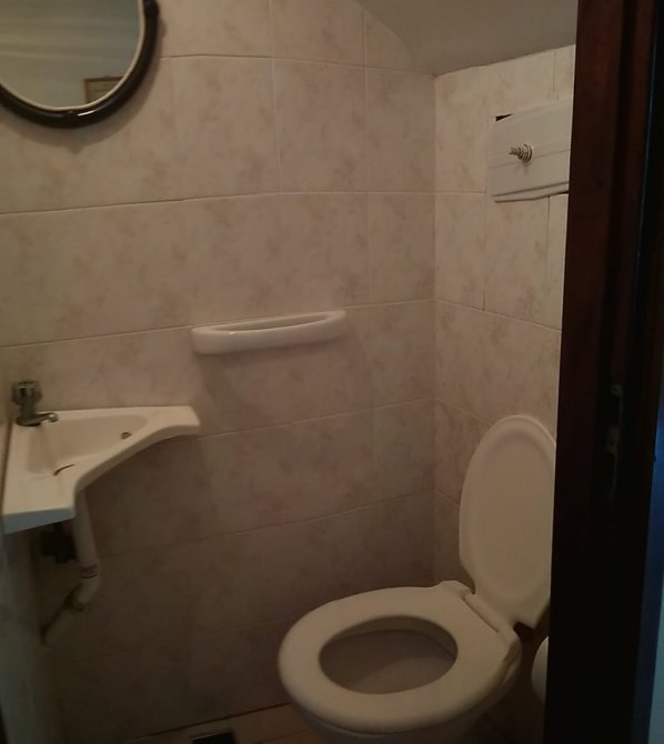 Estacionamiento, un baño y un toilette. Excelente estado. Agua corriente instalados.- Gas envasado